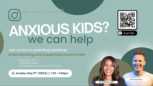 UNDERSTANDING & SUPPORTING ANXIOUS KIDS - SUNDAY, MAY 17 AT 1:30 P.M. Join us as we partner with Calvary Baptist Church, and learn tools to help your family navigate childhood anxiety. This session is perfect for parents, caregivers, and anyone eager to support kids in feeling calm and confident.